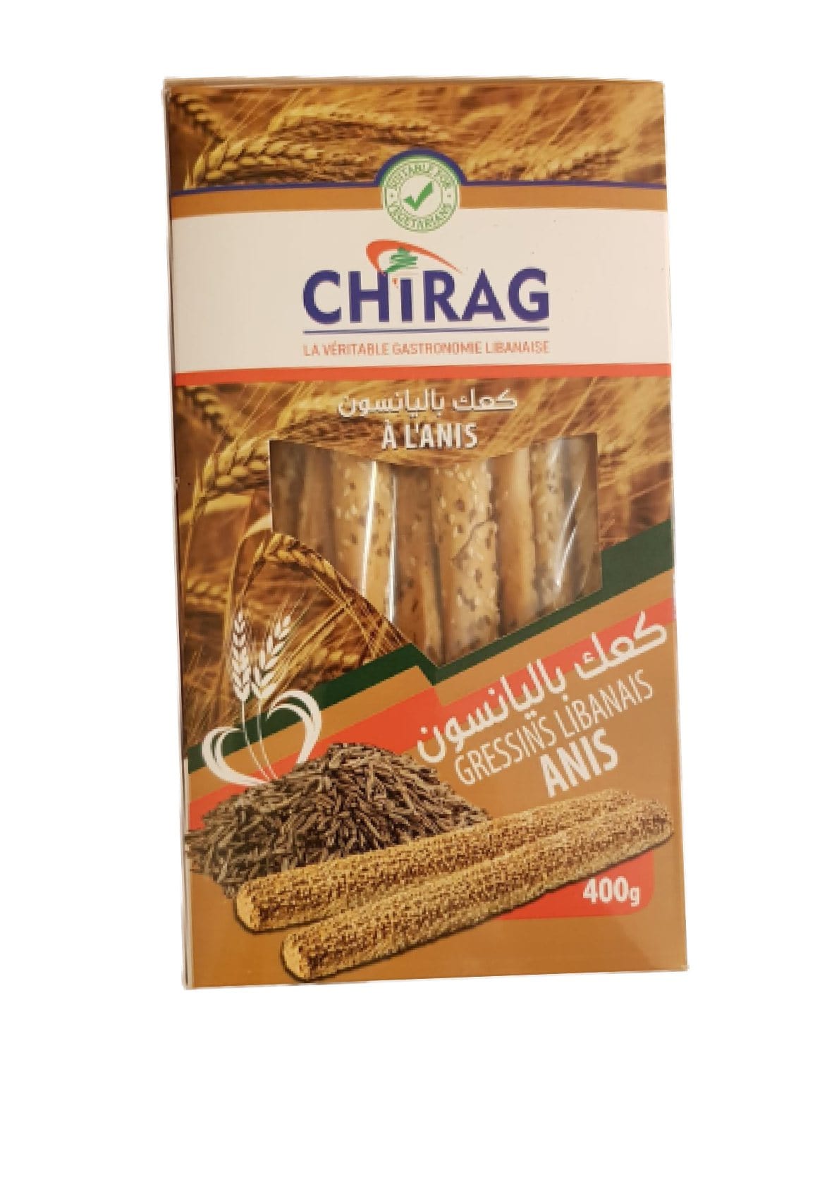 Ingrédients :Farine de Blé , eau , sucre , sésame (5%) , margarine végétale ( huile de palme ) , bicarbonate de sodium , épices ( mahlab , fenouil ) , Anis ( 5%)